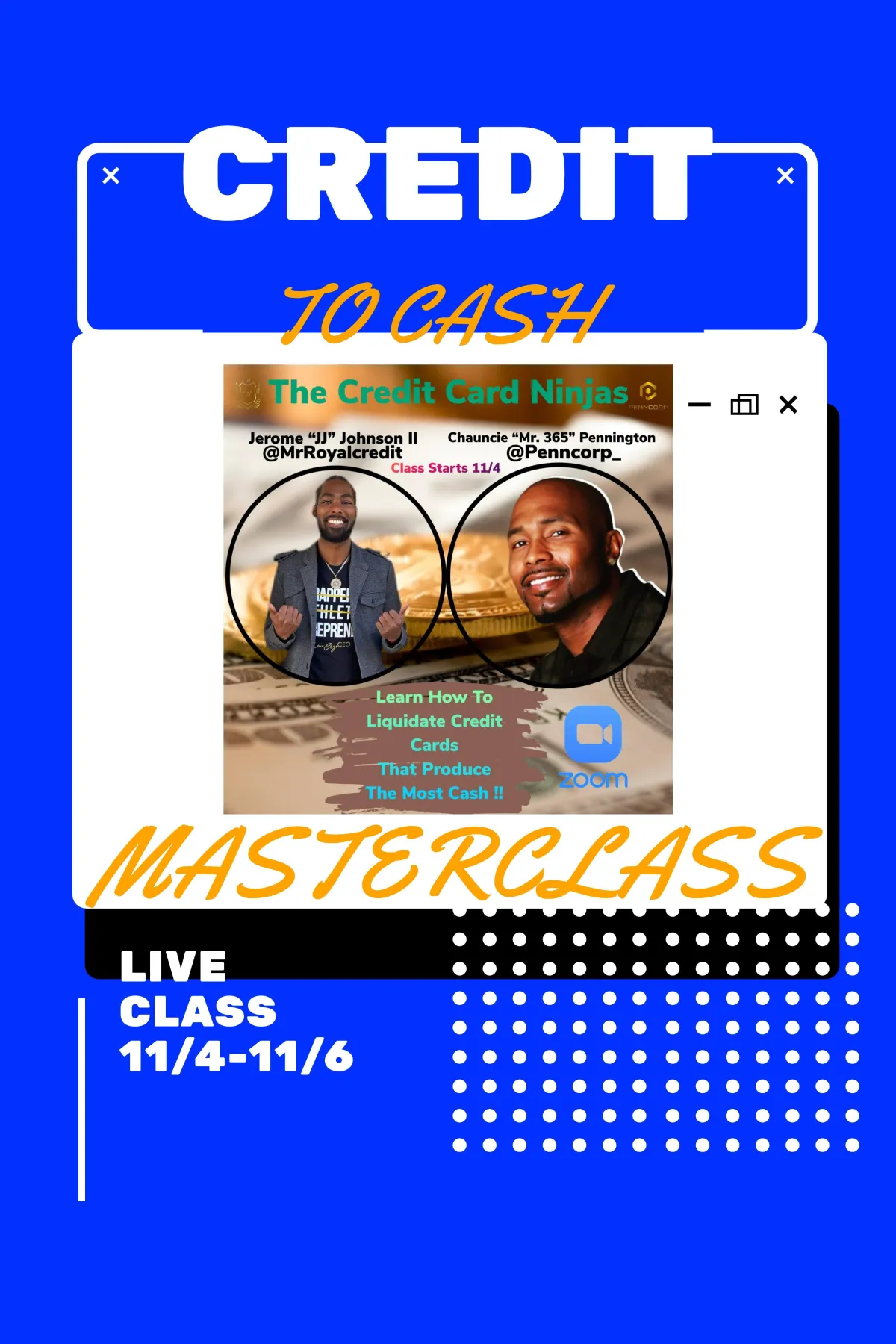 Congratulations, you are right on time !! As promised you are the first to be informed about Credit To Cash Masterclass! This Special will only last until Friday 10/22 @ 11:45 pm (PST).