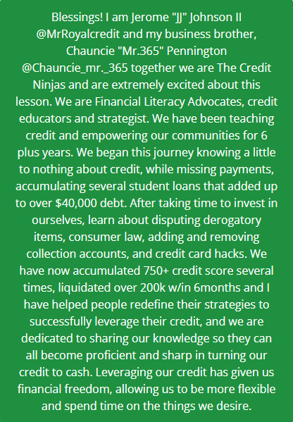 Today I’m offering, Credit To Cash Masterclass which is the first coaching and consulting program that will get you not only free groceries, free designer clothes, money to invest in your businesses, free trips and luxury whips but also live the life you desire.